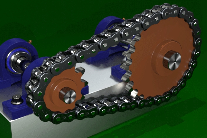 Chain and sprocket systems transfer rotational motion between distant shafts using a toothed wheel (sprocket) and a chain. The sprocket teeth mesh with the chain links to transmit power without slippage.